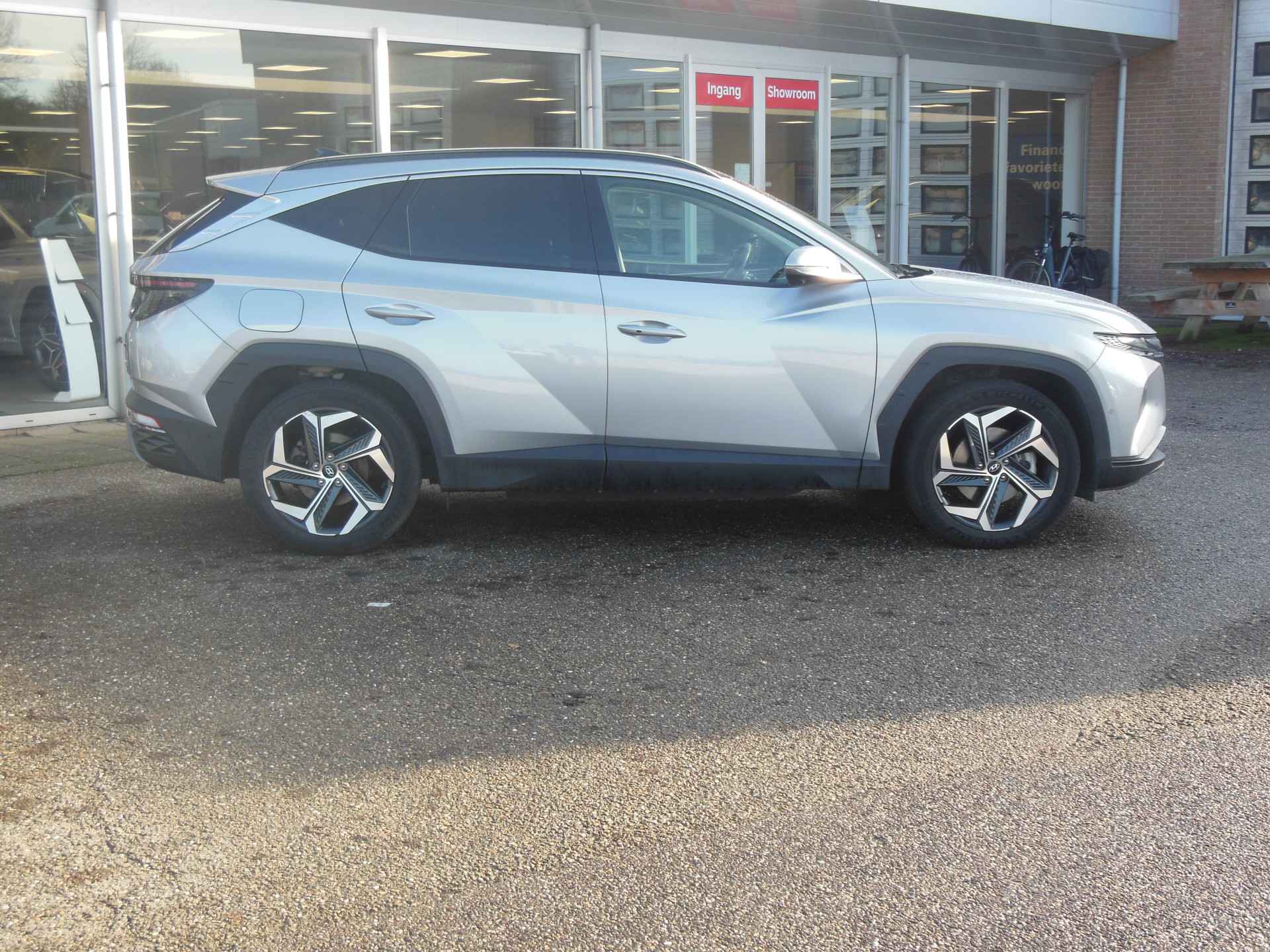 Met de Hyundai Tucson is heel veel mogelijk. Een vakantie met het hele gezin, die nieuwe kast ophalen bij Ikea of gezellig met zijn vijven een dagje erop uit. De benzinemotor geeft deze auto sportieve prestaties en zorgt voor een laag brandstofverbruik. Van een cabrio heeft u alleen 's zomers plezier. Maar het elektrisch bediende glazen panorama dak van deze auto betekent het hele jaar genieten. Net zoals u elke dag het gemak ervaart van de elektrisch bedienbare achterklep. Winters instappen is er niet meer bij dankzij de stoelverwarming. Op gure dagen is het ook achterin heerlijk bijkomen op de verwarmde achterbank. Tot de voorzieningen van deze auto behoren 19 inch lichtmetalen velgen, LED koplampen, donker getint glas achter, in delen neerklapbare achterbank, LED-achterlichten en verstelbare lendensteunen.