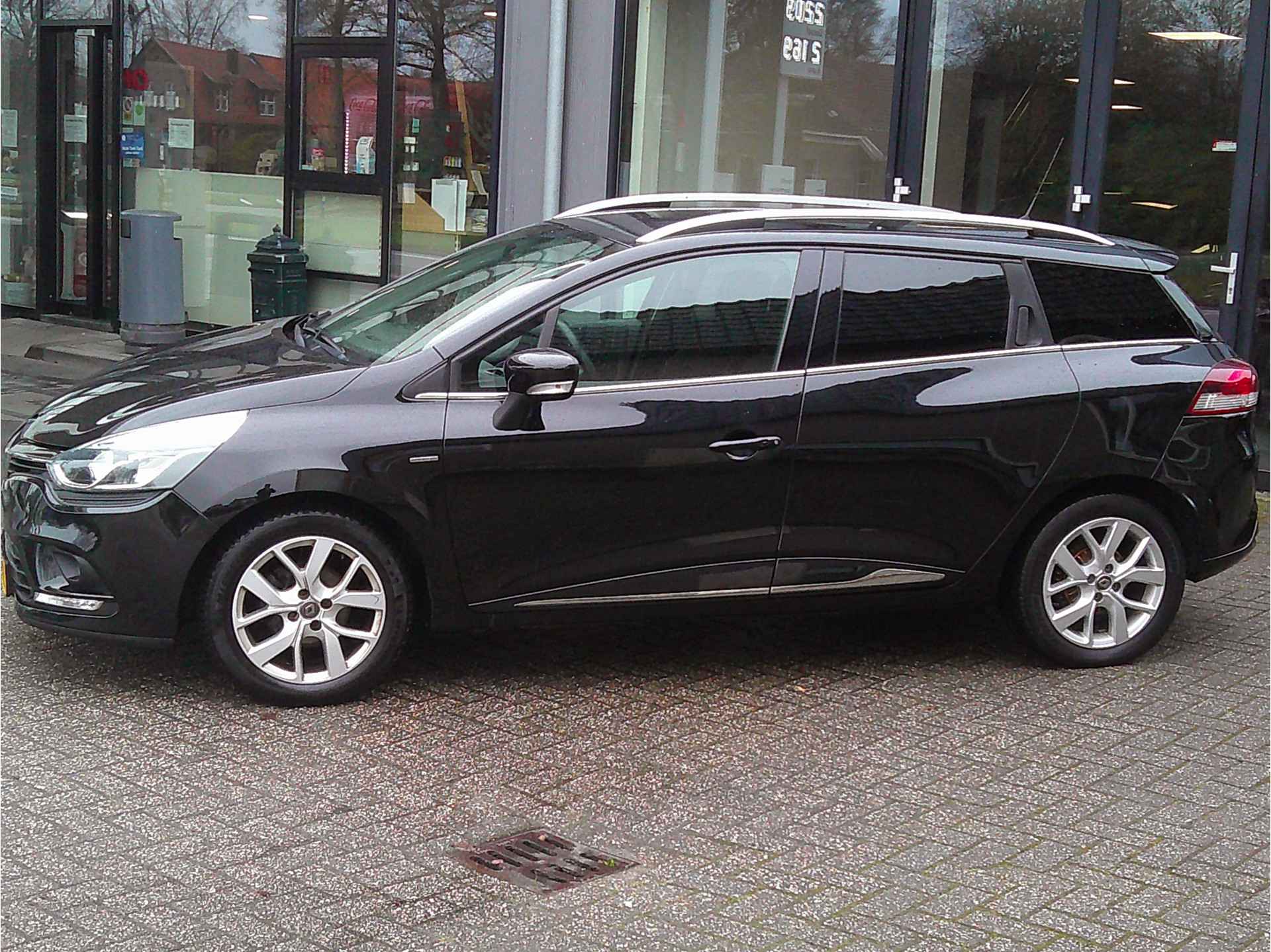 U bedient het full map navigatiesysteem en het audiosysteem met DAB-radio via knoppen op het stuur. Zo kunt u steeds uw aandacht gericht houden op de weg. Onbedoeld snijden na het inhalen gebeurt niet meer, dankzij de achteropkomend verkeer waarschuwing. De parkeersensoren vertellen precies hoe ver u kunt gaan. Hoe dichter op een obstakel, hoe sneller de piepjes. Zuinig zoeven, dat kan deze auto dankzij de aanwezige cruise control. Een prettige optie is de keyless entry, die ervoor zorgt dat de Renault Clio Estate automatisch van het slot gaat als u dichtbij komt. Natuurlijk behoren airconditioning, lederen stuur, bagage afdekhoes, boordcomputer en lederen versnellingspook ook tot de uitrusting van deze complete auto.