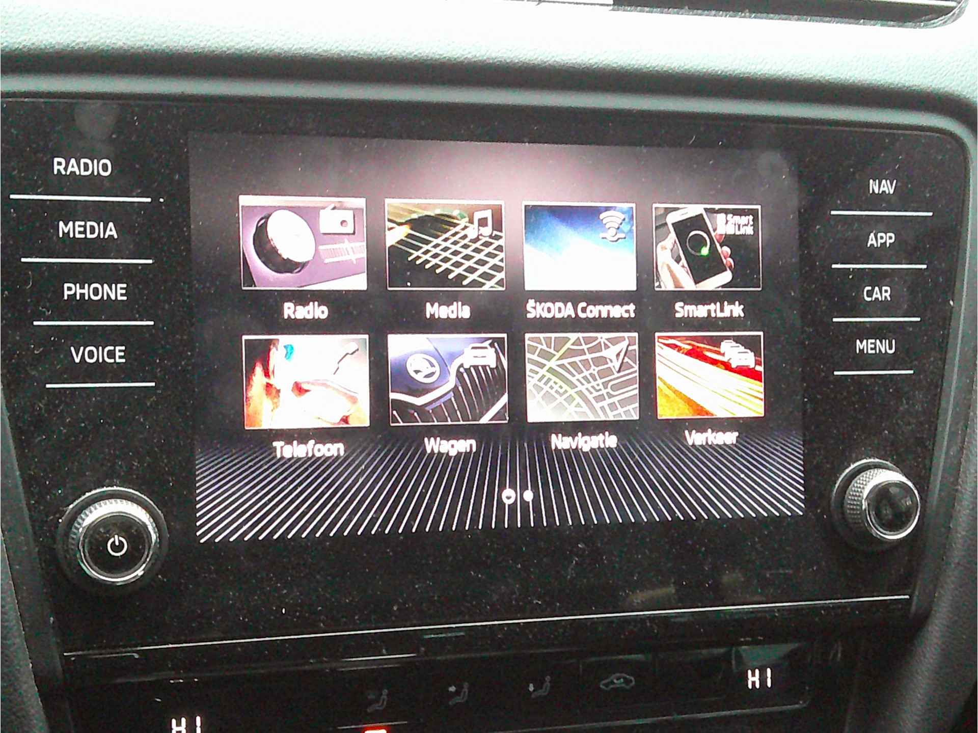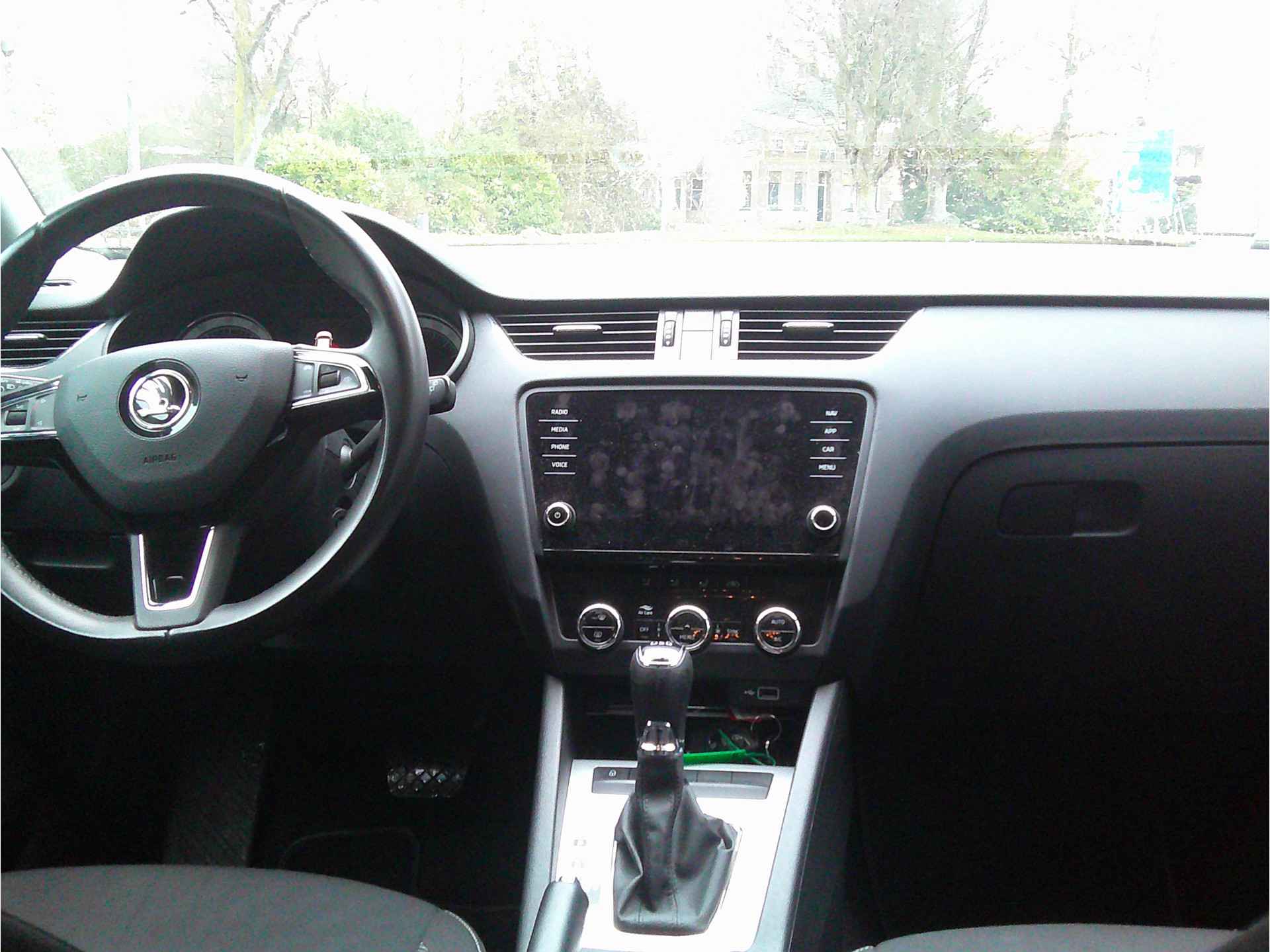 Onderweg kunt u veilig genieten van het audiosysteem en het full map navigatiesysteem. Want in deze ŠKODA bedient u ze vanaf het stuurwiel of met uw stem. Geef uw smartphone onderweg weer energie; zonder snoer, met de draadloze oplaadmogelijkheid voor telefoons. Uiteraard voorzien van Qi-technologie. U verwacht natuurlijk automatische airconditioning in deze auto, en die is er dan ook. De parkeersensoren registreren alles. Ook dat ene paaltje dat net buiten uw gezichtsveld valt. Deze ŠKODA Octavia Combi maakt het rijden graag gemakkelijk. Daarom verzorgt de regensensor de mate van ruitreiniging die de ruitenwissers moeten leveren bij neerslag. Wat u ook in deze auto kunt vinden zijn cruise control, automatisch dimmende buitenspiegels, lederen stuur, centrale deurvergrendeling met afstandsbediening, boordcomputer en lederen versnellingspook.